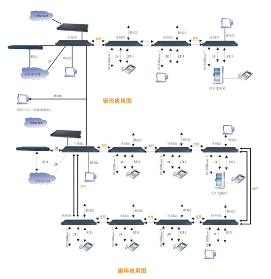 華光高科電子有限公司近期推向市場(chǎng)的新產(chǎn)品系列,它包括主端箱、輔端箱、中繼箱和音頻擴(kuò)展箱、2M擴(kuò)展箱5種主要設(shè)備。這些設(shè)備的不同組合,可以組成點(diǎn)對(duì)點(diǎn)、鏈型、環(huán)型不同的網(wǎng)絡(luò)拓?fù)浣Y(jié)構(gòu),連接環(huán)型網(wǎng)絡(luò)時(shí),具有自愈保護(hù)功能(保護(hù)倒換時(shí)間小于50ms)。能實(shí)現(xiàn) 2M、10/100M以太網(wǎng)、2/4線音頻、FXO和FXS 等多種業(yè)務(wù)接口的綜合傳輸。這些設(shè)備都采用19英寸1U 標(biāo)準(zhǔn)機(jī)箱,統(tǒng)一網(wǎng)管,易于安裝,便于維護(hù),并且具有完善的網(wǎng)管告警功能和環(huán)回測(cè)試功能,可用于廣電、各電信運(yùn)營(yíng)商的公用網(wǎng)和公安、部隊(duì)、電力、鐵路公路交通、金融、政府及具有分支機(jī)構(gòu)的企事業(yè)單位的專用網(wǎng)。特別是對(duì)于10/100M以太網(wǎng)接口要求較多、可靠性高、有自愈保護(hù)功能、以太網(wǎng)傳輸通道需要相互獨(dú)立的應(yīng)用場(chǎng)合,具有明顯的優(yōu)勢(shì)。