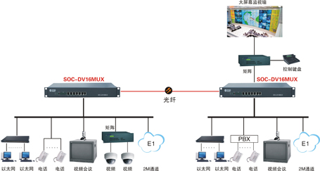 HG-DV16MUX多業務視頻光傳輸平臺是華光高科電子有限公司根據市場需求,適時開發出基于視頻傳輸的多業務光傳輸平臺,采用國際最先進的數碼視頻高速傳輸技術,將同時把16路視頻,16路音頻,2路E1接口,4路數據(RS485/RS422/RS232/),8路開關量、8路電話(FXS /FSO/EM/載波/磁石,最多克擴60路電話)、多路10M/100M/1000M以太網等等接口在單芯或雙芯光纖上無失真、高質量傳輸。SOC- DV16MUX多業務視頻光傳輸平臺采用全數字無壓縮技術,因此能支持任何高分辨率運動、靜止圖像無失真傳輸;克服了常規的模擬調頻、調相、調幅光端機多路信號同傳時交調干擾嚴重、容易受環境干擾影響、傳輸質量低劣、長期工作穩定性差等致命缺點。并可同時提供多路視頻、音頻、數據、電話語音、以太網在光纖上同時傳輸,大大節省了用戶設備投資成本,提高了光纜利用率。系統采用結構化、模塊化設計,采用~220V和-48V同時供電,可接蓄電池,保證設備不間斷可靠的運行,并可納入網管系統,具有完善的網管功能。用戶可根據現場具體情況靈活選擇或定制配置。