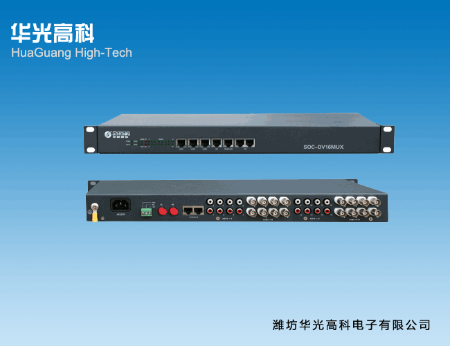 HG-DV16MUX多業務視頻光傳輸平臺是華光高科公司根據市場需求,適時開發出基于視頻傳輸的多業務光傳輸平臺,采用國際最先進的數碼視頻高速傳輸技術,將同時把16路視頻,16路音頻,2路E1接口,4路數據(RS485/RS422/RS232 /),8路開關量、8路電話(FXS/FSO/EM/載波/磁石,最多克擴60路電話)、多路10M/100M/1000M以太網等等接口在單芯或雙芯光纖上無失真、高質量傳輸。